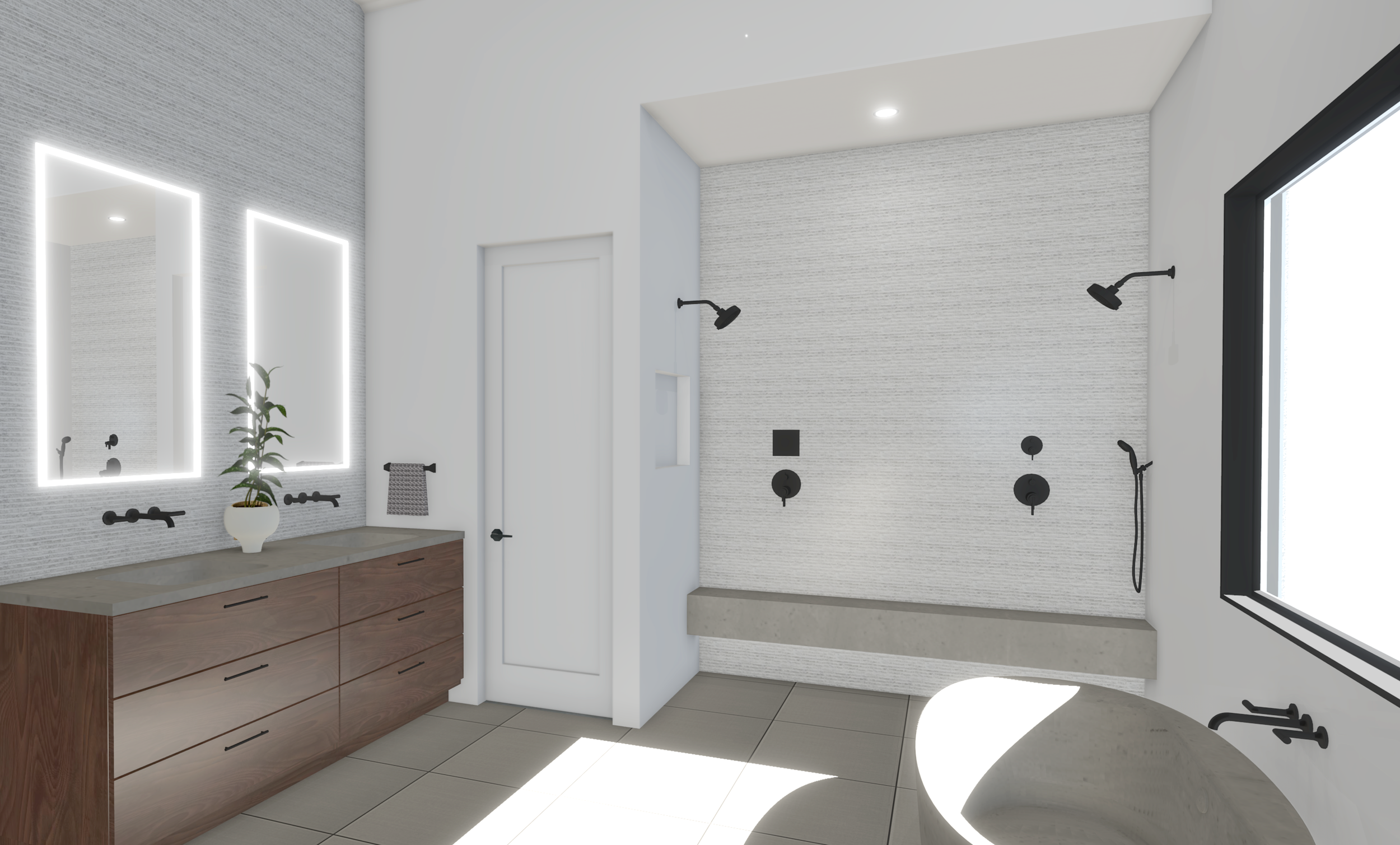 Rendering helps visualize the space dedicated to the freestanding tub next to the steam shower.