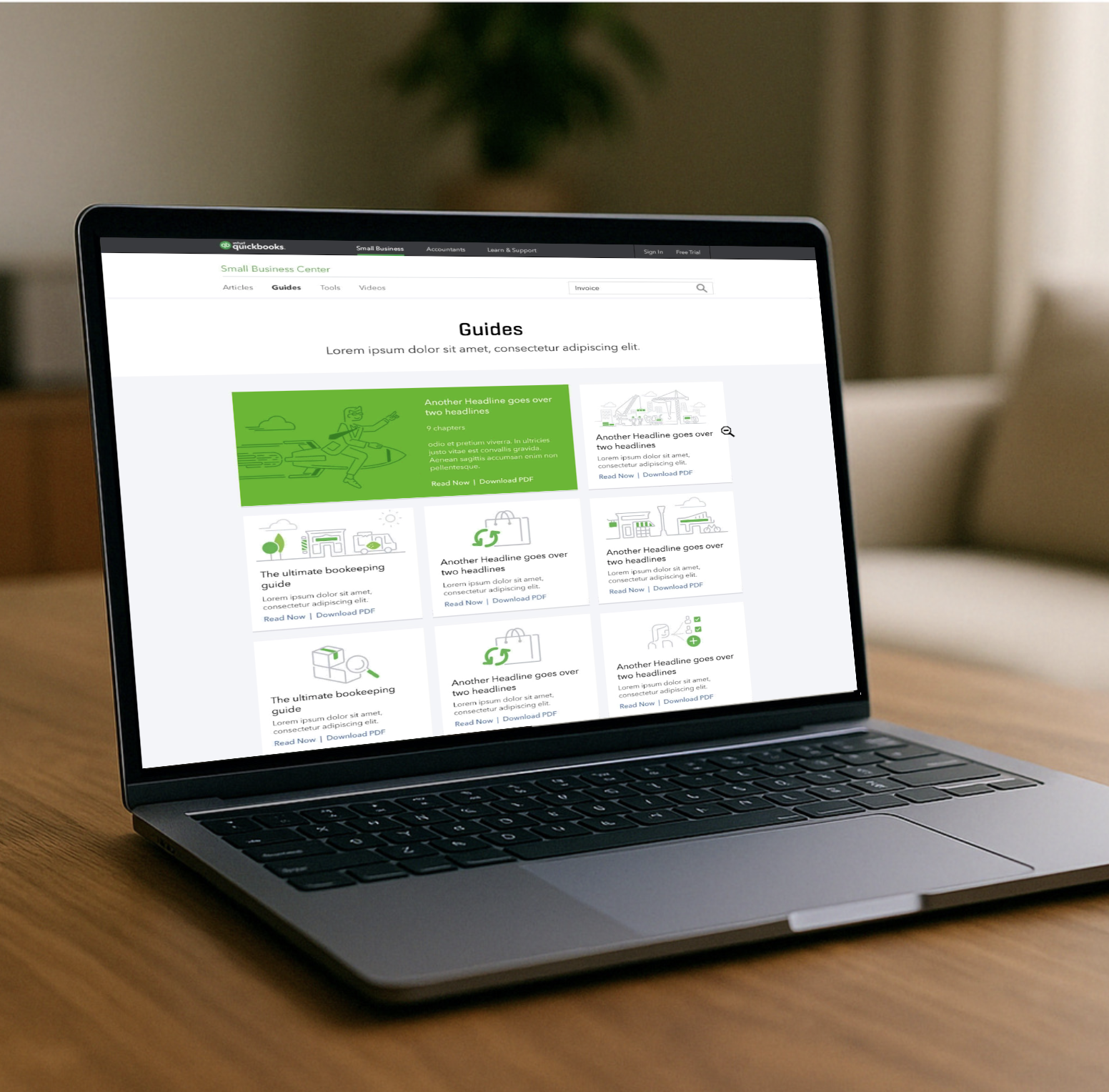 Layout design adapts seamlessly to diverse media and QuickBooks Developer content, while integrating QuickBooks’ colors, typography, and stylistic cues for a cohesive, on‑brand experience.